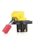 Matière thermoplastique renforcée couleur noire - Bornes M8 argentées - Verrouillable par cadenas - Désignation similaire : coupe circuit de batterie, coupe batterie, robinet de batterie, sectionneur de batterie, interrupteur principal de batterie, relais de batterie